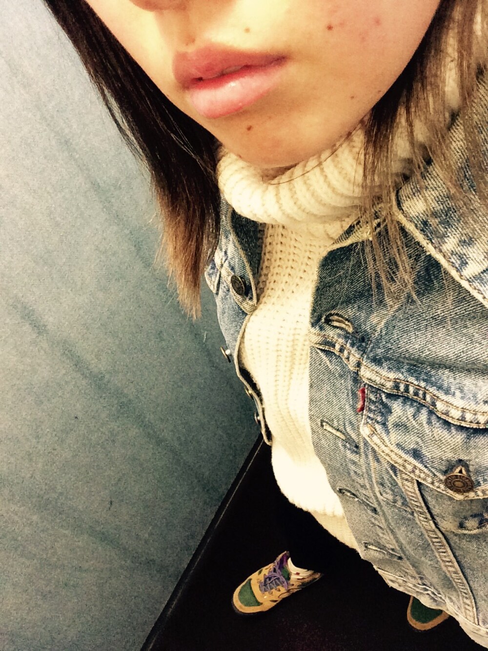 リュックからいたかったので久々のデニム。なで肩だからすぐリュックの紐落ちるけど両手が自由だから好き。でも写ってないです▲ タートルニットは首まであったいから寒い日にありがたいですね○