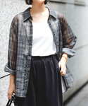 程よい透け感が可愛いシアーシャツにキュプラのスカートを合わせたスタイル🧏♀️ 自分はキレイめを崩すのが好きなので小物は逆にカジュアルな素材感のものを集めました⟡.* シャツはシアー素材なのでチェックシャツでもカジュアル過ぎる着こなしにならず、ボトムス次第でカジュアルにもキレイめにも着れそうです! スカートは細身ですがスリットが入っていて、ウエスト周りにもギャザーが入っているのでゆったりとした着心地です🙆♀️ ふくらはぎ下あたりは多少透け感ありますが履いてしまえばそこまで気になりませんので1度店頭でお試しください🤲´-