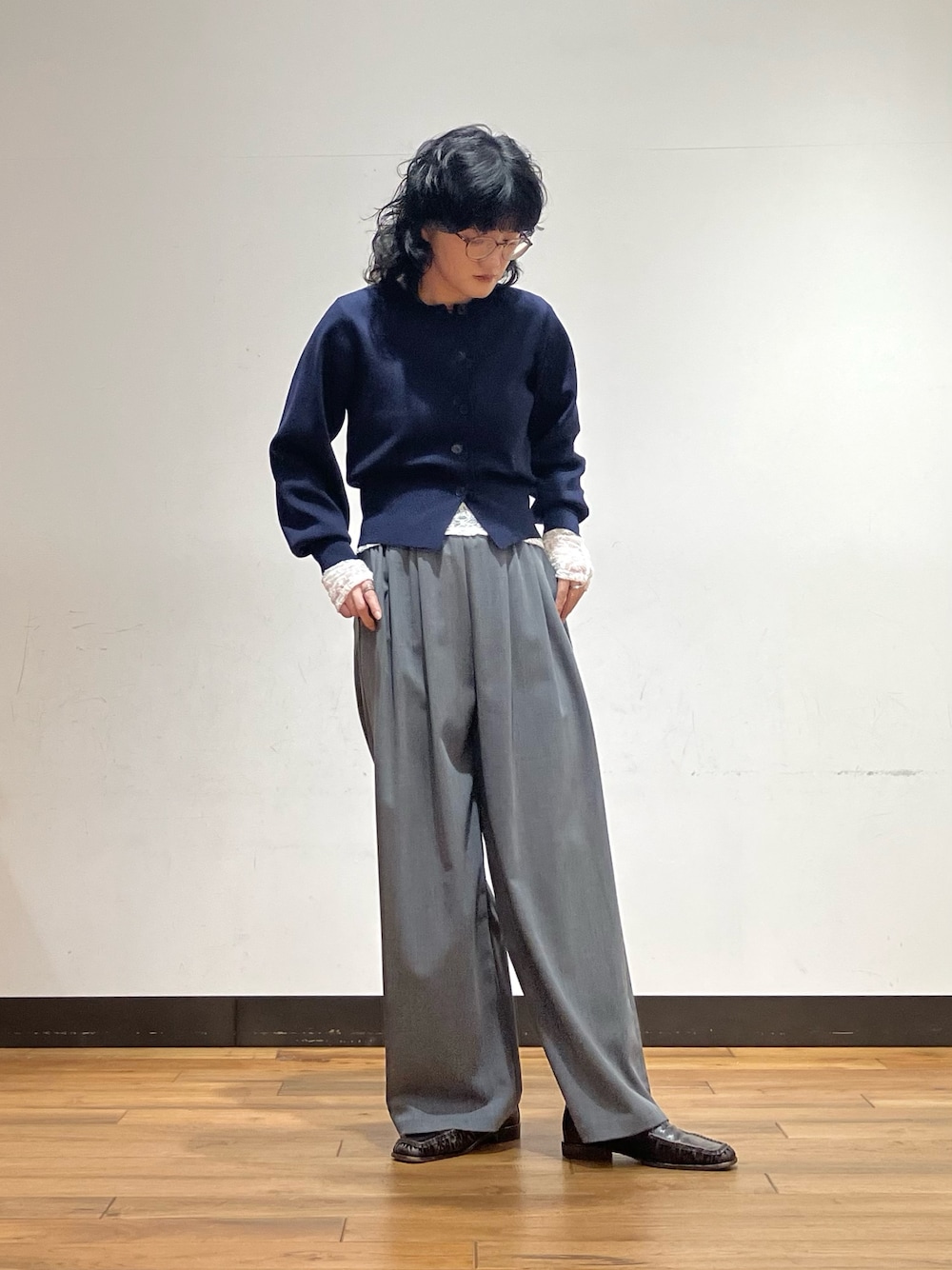 ▷ コクーンスリーブカーディガン 裾のリブがしっかり取ってあることでメリハリのあるシルエットが叶うカーディガンˊ˗ ワイドパンツやボリュームのあるスカートと合わせるとよりスタイルアップが叶います👀✨️ 私はレースアイテムをレイヤードして着用しています˖ ࣪⊹ ▷ タックギャザーストレートパンツ 166cmで38着用 着回し力と楽チンさが推しポイントなストレートパンツ ギャザーがしっかりあるのでシンプルになりすぎないのが嬉しいです☑ お家で洗濯機で洗えるのでお仕事着にもオススメです✍️ 良かったらフォローとお気に入り登録よろしくお願いします🌼*・