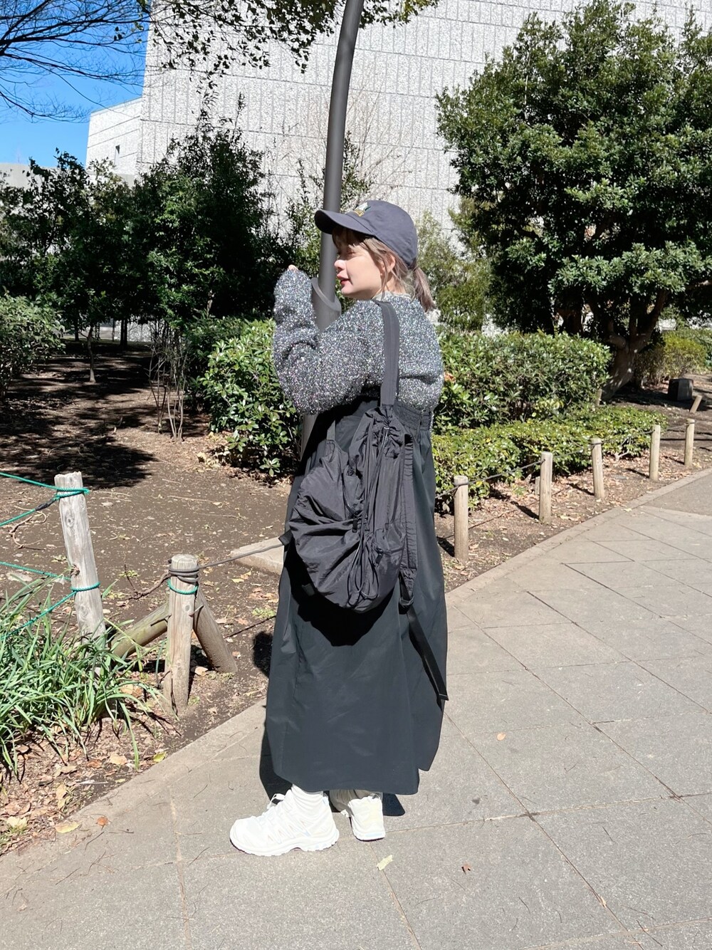 ブラックのキャミワンピをカジュアルに 合わせてモノトーンコーデにしました😳 ○ラメシャギーPO かなりキラキラ感のあるラメフェザー糸を使用したPOです💫今年のトレンドでもあるので取り入れるだけで今っぽいコーデになります🫶形はシンプルなので合わせやすく、意外とチクチク感も無いので着やすいです! ○タックギャザーキャミOP 綿ポリエステルのシーズンレスな素材感のキャミOPです。シンプルですが、上身のタックもポイントです!ニット〜Tシャツまで幅広くレイヤードできるので長いシーズンで使える万能ワンピです。 ○ドロストシャーリングリュック ドロストで絞るデザインが可愛いリュックです。意外と容量もたっぷり入れられて、外側のポケットも沢山あるので機能的にも使いやすくオススメです😉