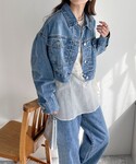 MO(FG women's EC)のデニムジャケット「クロップド丈デニムジャケット」を使ったコーディネート