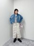 デニムと明るめのカラーを合わせて 春っぽいカジュアルコーデにしました🫐 ○クロップド丈デニムジャケット フレディの定番だったデニムジャケットのディテールはそのままにクロップド丈になったGジャンです。スカートやワンピースに羽織っても短め丈でバランス良く見えるのでオススメのアイテムです! ○スパンコールキャミビスチェ 羽織ものの中に着てチラ見せでも今年っぽいコーデになれるプラスワンのアイテムです💫 是非色んなアイテムにレイヤードしてもらいたいです😉 ○ポケ付きカーゴスカート ポケット多めのデザインがポイントのカーゴスカートです!今回着用のライトベージュは薄めの色味で春物とも相性抜群のスカートです! シルエットも細めですっきり見えるのでオススメです。