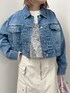 MO(FG women's EC)のデニムジャケット「クロップド丈デニムジャケット」を使ったコーディネート