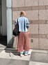 デニムオンデニムコーデに ラメメッシュジレを重ねた レイヤードコーデにしました💫 ○デニムクロップドシャツ 短め丈なので羽織でもバランスが取りやすく合わせやすいシャツです! 程良く薄手で柔らかいデニム生地なので気温が上下しやすいこの季節の羽織りに万能アイテムです! ○ラメメッシュレイヤードジレ ラメMIXのサラッとしたタッチ感のメッシュ編みニットです。 今回のコーデのようにシャツの下やジャケットの下にレイヤードしたり、Tシャツの上に重ねるだけで今っぽいコーデになるアイテムです💫程良いラメ感が可愛いです! ○ストレートデニムPT フレディの定番デニム!細すぎず太すぎずのシルエットがどんなコーデにも合わせやすい万能デニムです! ○ドロストギャザーリュック ドロストで絞るデザインが可愛いリュックです!意外容量もしっかり入れられて、外側にポケットもあるので機能的にも使いやすくてオススメです!