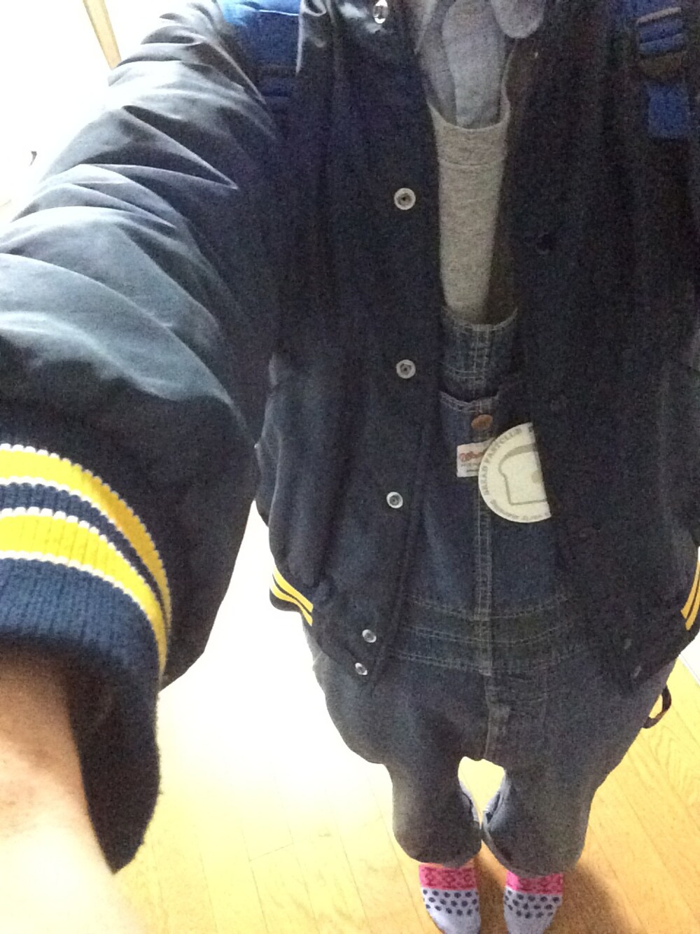 オーバーオール スタジャン champion スウェット パン部 ノベルティ缶バッチ 古着です!全身!ラフに着こなし てみました 笑