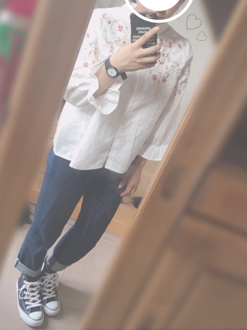 ボトムス:GU 袖の部分がとってもお気に入りのブラウスはデニムと相性バツグン👖🌟 久々に髪まとめてみた😏 いいね、お気に入り 嬉しいです ありがとうございます(>_<)