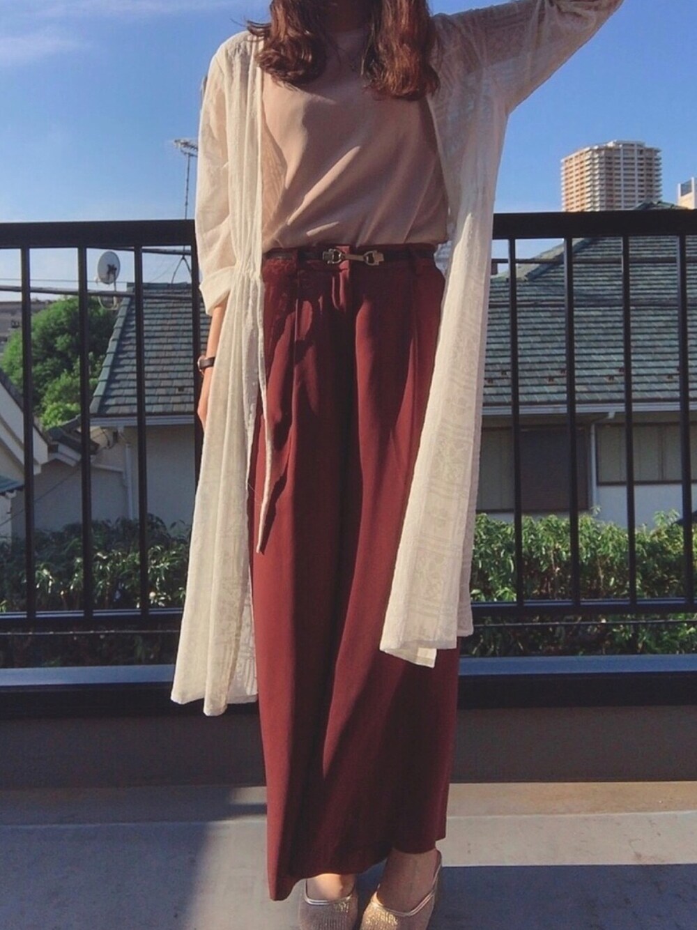 見ていただきありがとうございます🙇🏻♂️ レースアウターをメインとなるように トップスの色は抑えめで、パンツを色物にして綺麗めにしました🎵 KOBE LETTUCEのミュールはゴールドがキラキラして可愛くてお気に入り👡✨
