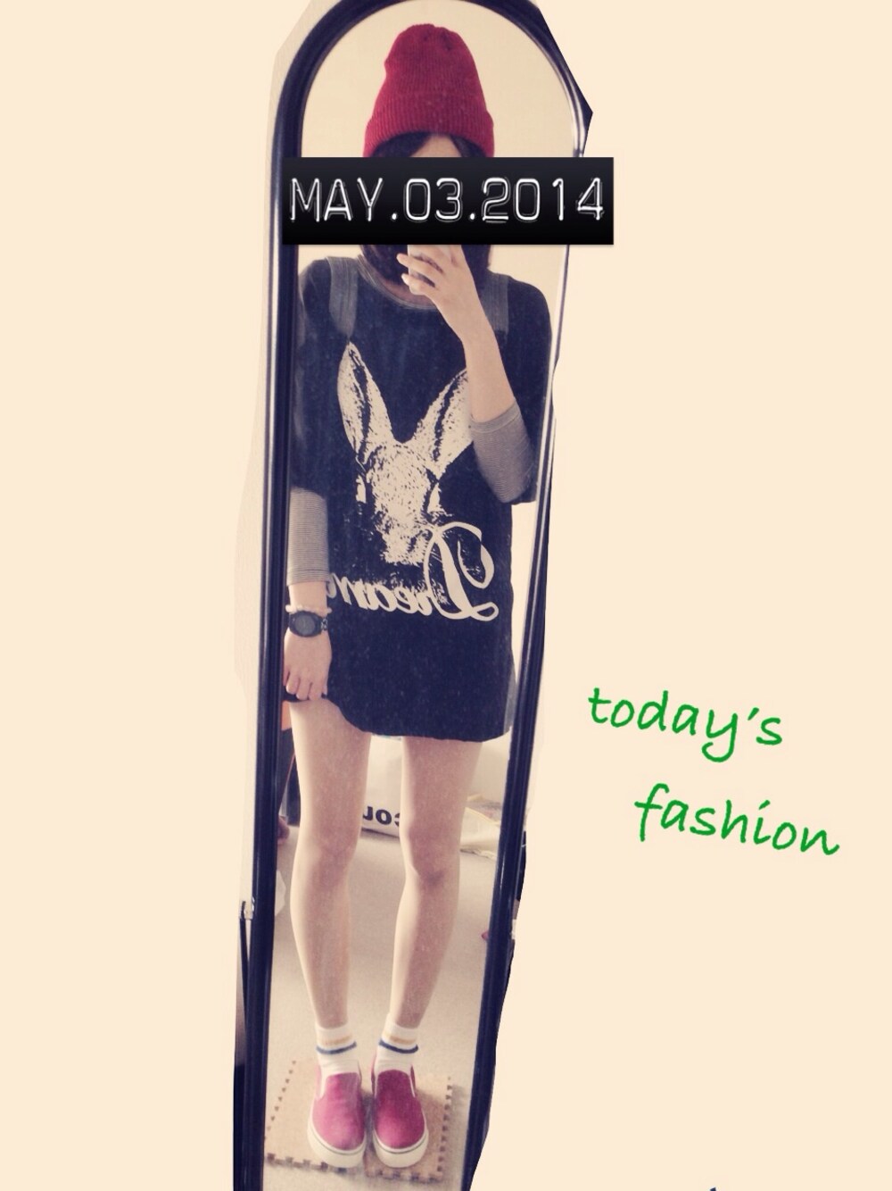 nitcap:ブランド不明 T-shirt:ブランド不明 socks:tutuanna shoes:無印良品