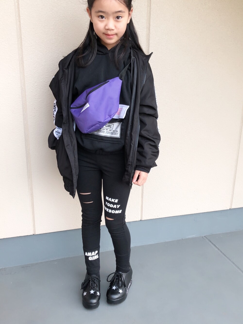 今日もブラックコーデ レギンスがお気に入り♡ ウエストポーチは雑誌の付録