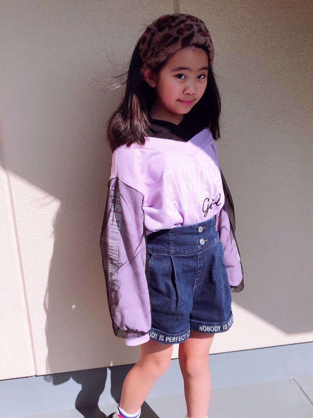 春コーデ 早くショートパンツでも寒くない季節にならないかな? トレーナーのお袖がふんわりしていてチュール重ねてダブルで可愛いです