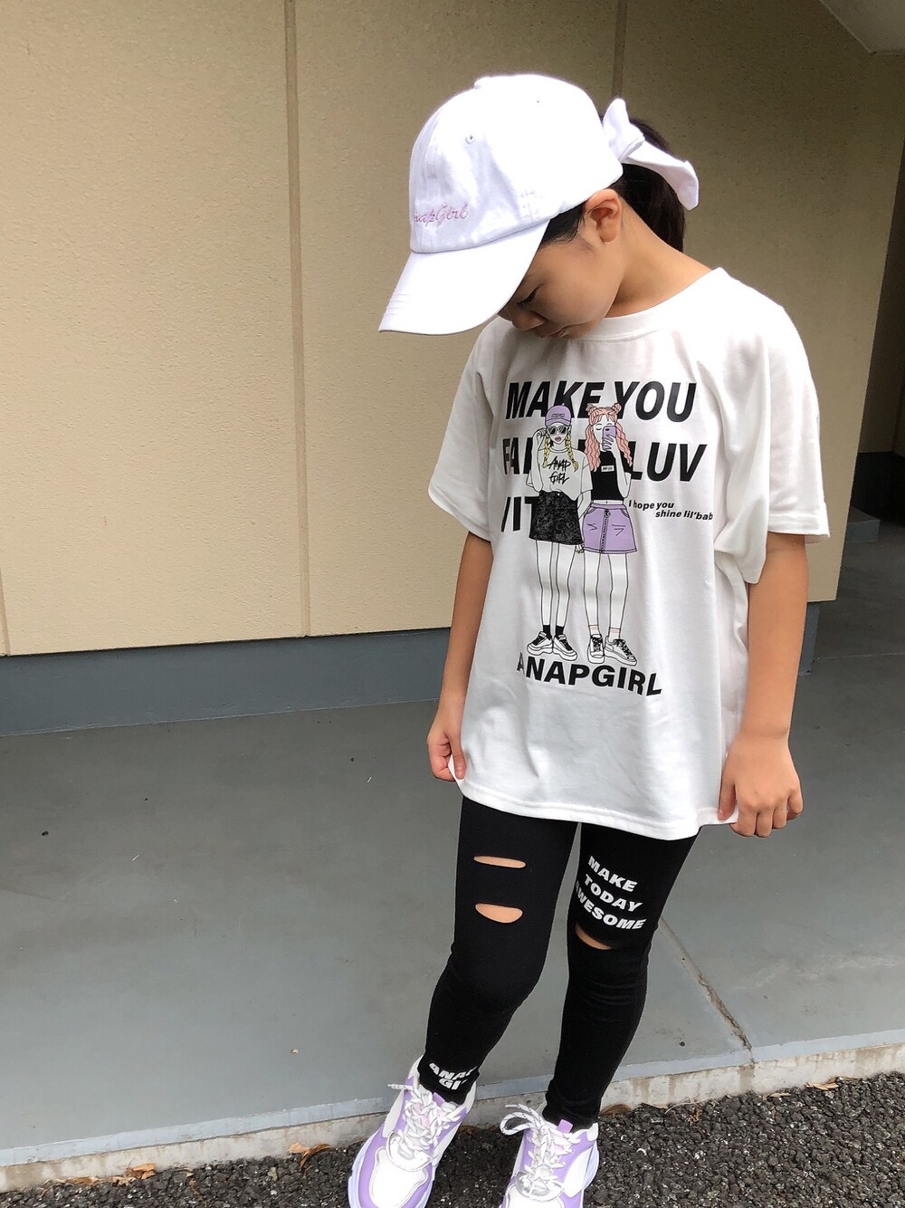 ラフな感じでとっても良い感じ 娘がいつも自分なりに考えてる😊 やっぱり、白とクロが好き❤️ このレギンスはとっても柔らかいし、薄手なのも良い😊