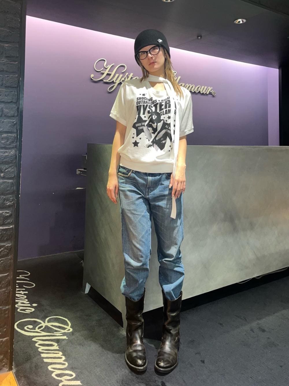 moanghaeee(HYSTERIC GLAMOUR池袋パルコ店)のデニムパンツ「HYS SP加工 スリムストレートデニムパンツ」を使ったコーディネート
