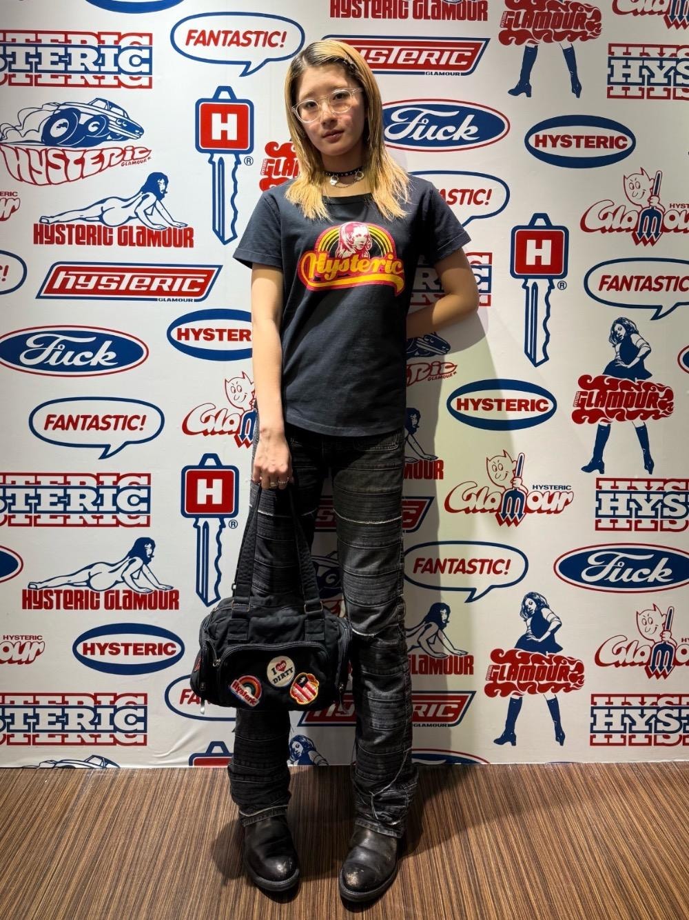moanghaeee(HYSTERIC GLAMOUR池袋パルコ店)のボストンバッグ「PATCH SCRATCH ミニボストンバッグ」を使ったコーディネート