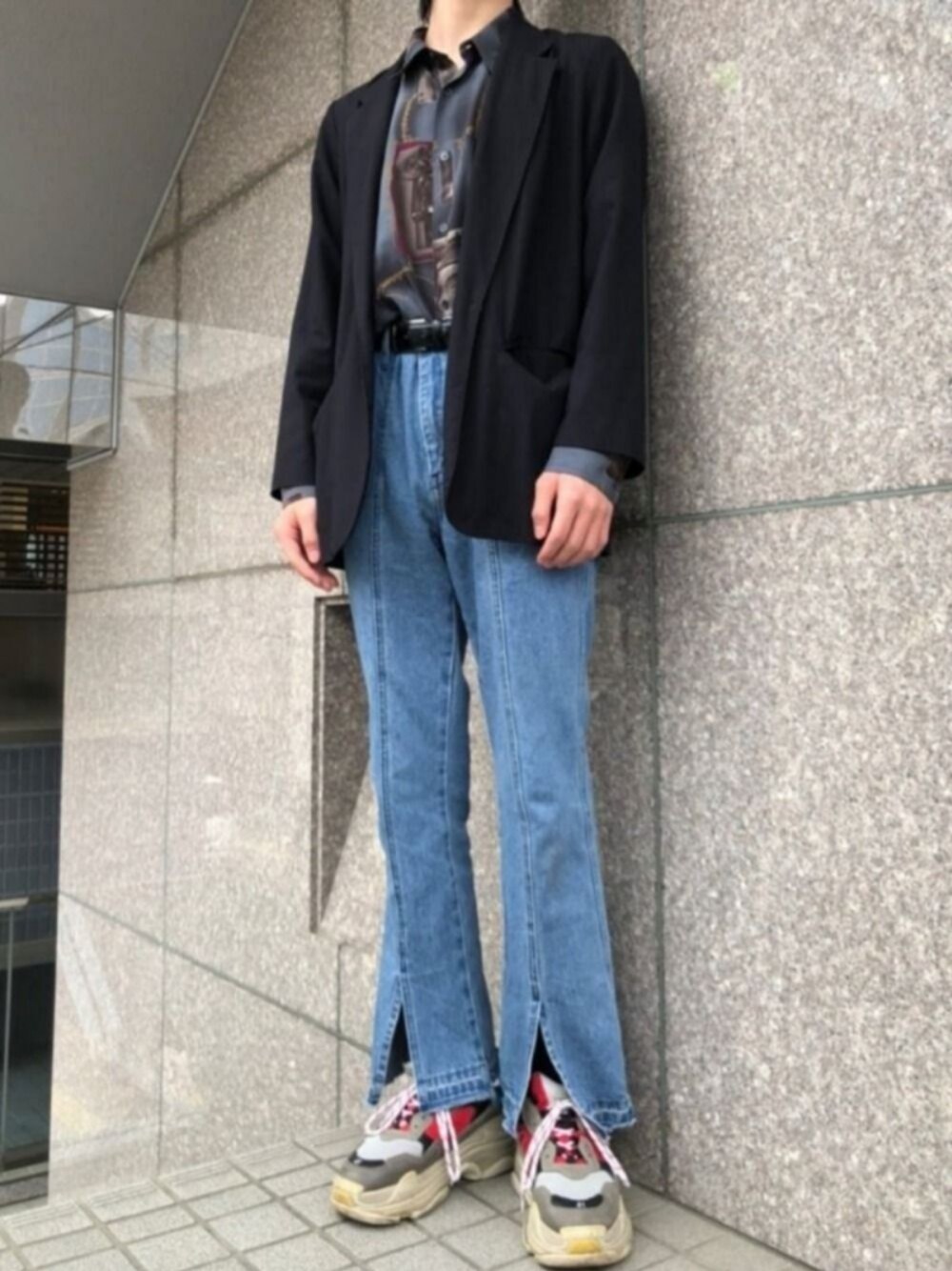 mobのデニムパンツ「センタースリットデニムフレアパンツ(HARE)」を使ったコーディネート