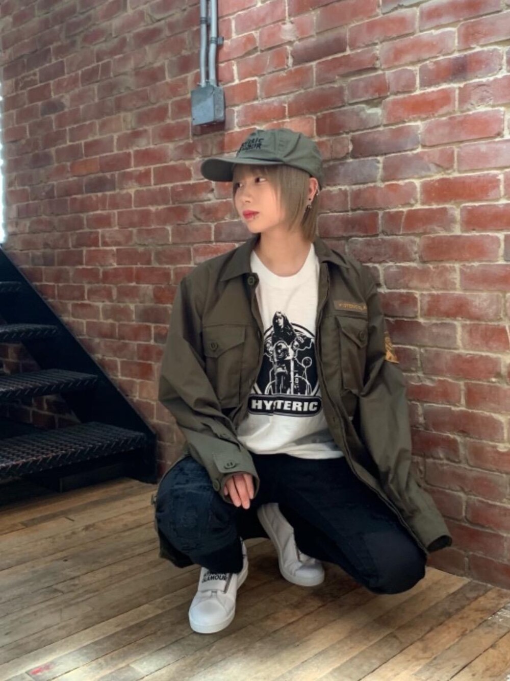 mobu(HYSTERIC GLAMOUR大阪店)のスニーカー「PRIMALOFT VELCROスニーカー」を使ったコーディネート
