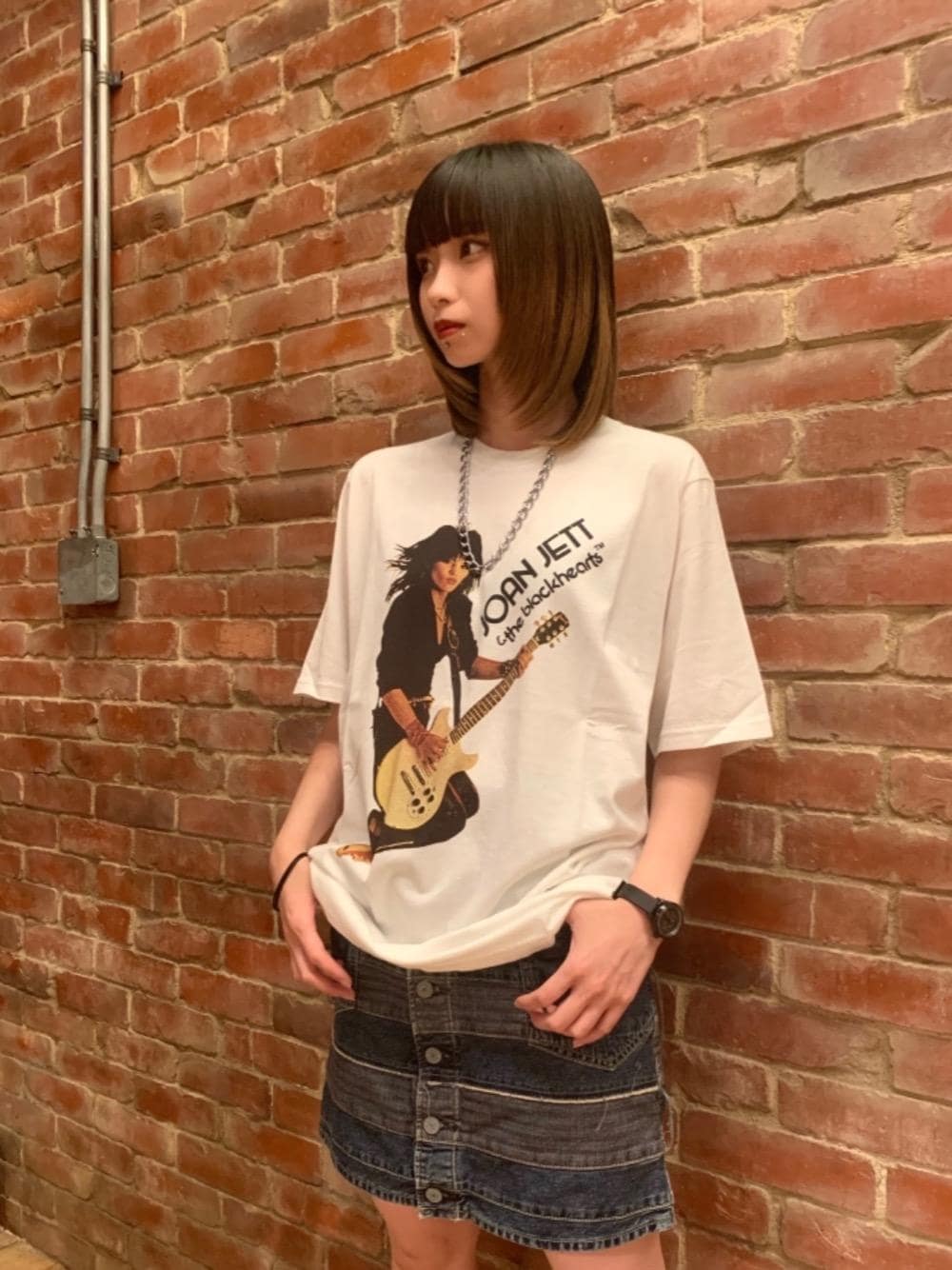 mobu(HYSTERIC GLAMOUR大阪店)のデニムスカート「スクラッチAラインデニムミニスカート」を使ったコーディネート