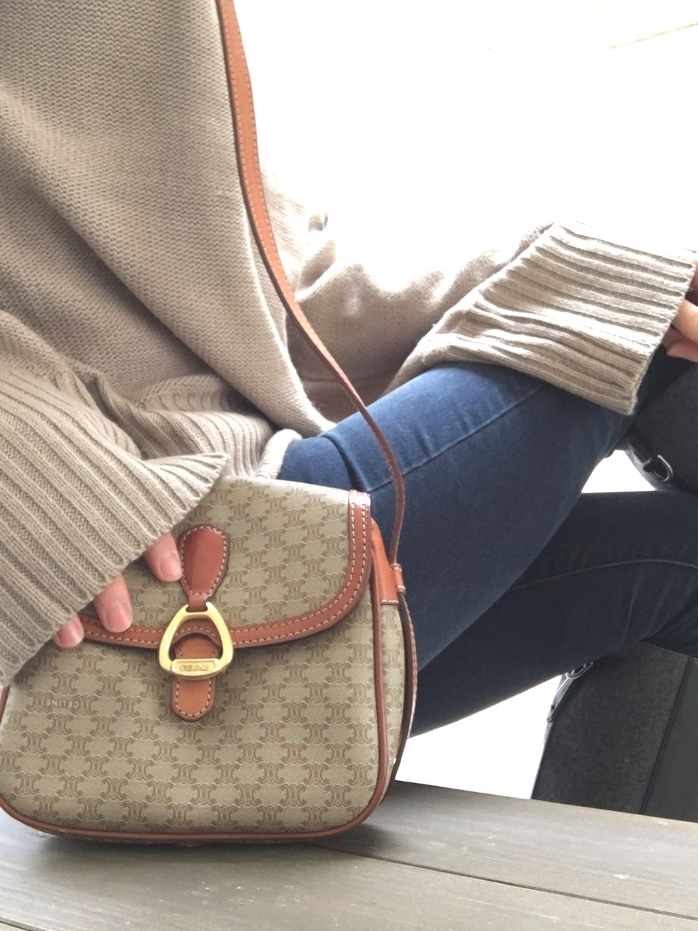 ジョッキーブーツが履きたいので スキニーパンツに、ゆったりニットで... OLD CELINEがコロンとしてて❤️