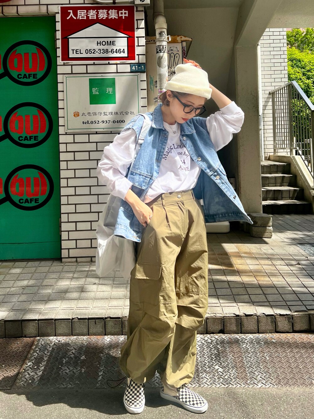 mocaのカーゴパンツ「【累計販売1万本!!】10色展開 ツイル ドローコードワイドカーゴパンツ」を使ったコーディネート