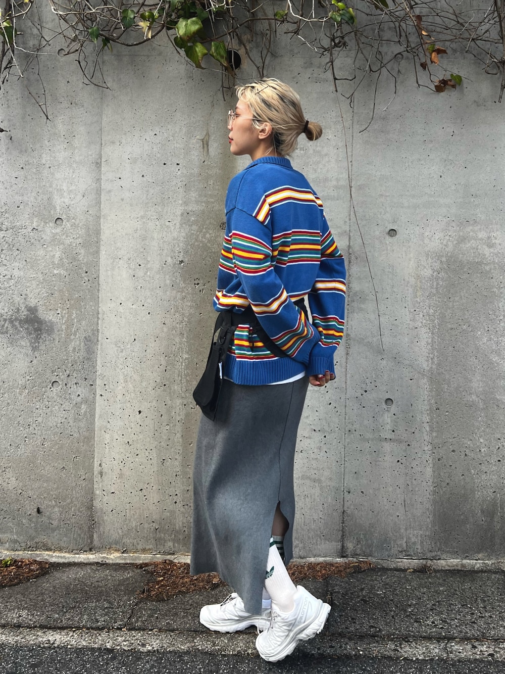 古着のハーフジップニットコーデ🧶 ベルトバッグ大好きすぎてずっと愛用中です、、🫣🤍