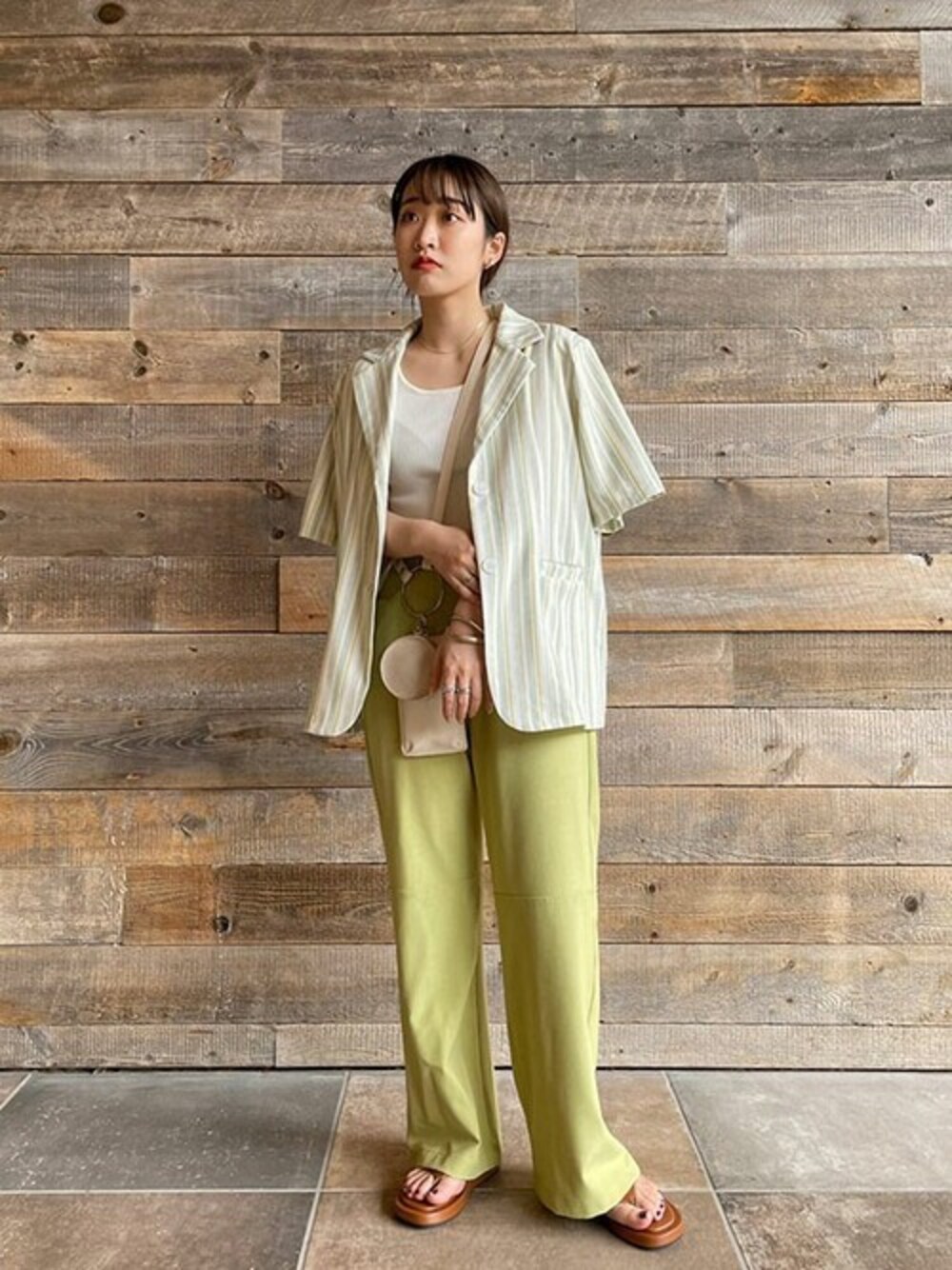 SELECT MOCA SNAP(MOCA office)のその他アウター「2021 SS リネンブレンドストライプシャツジャケット」を使ったコーディネート