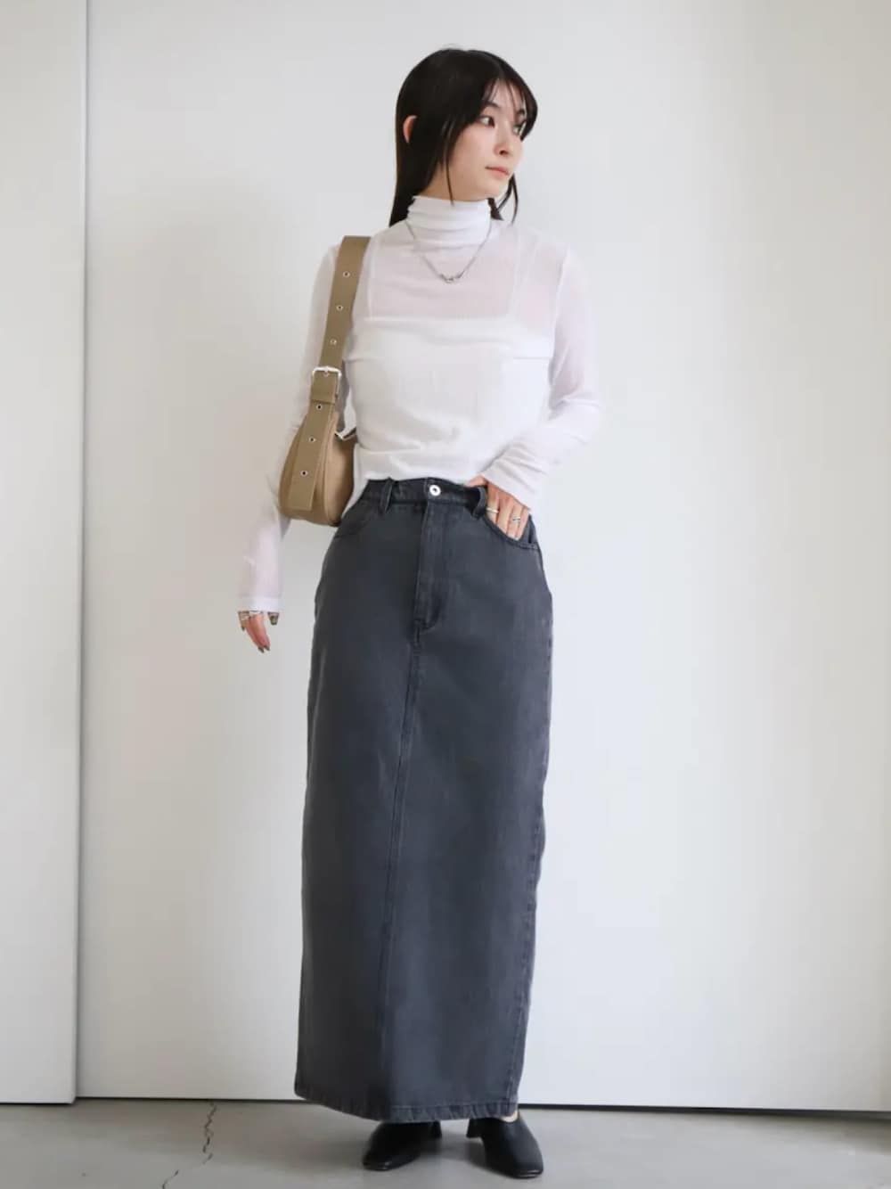 SELECT MOCA SNAP(MOCA office)のTシャツ/カットソー「シアーテレコハイネックトップス」を使ったコーディネート