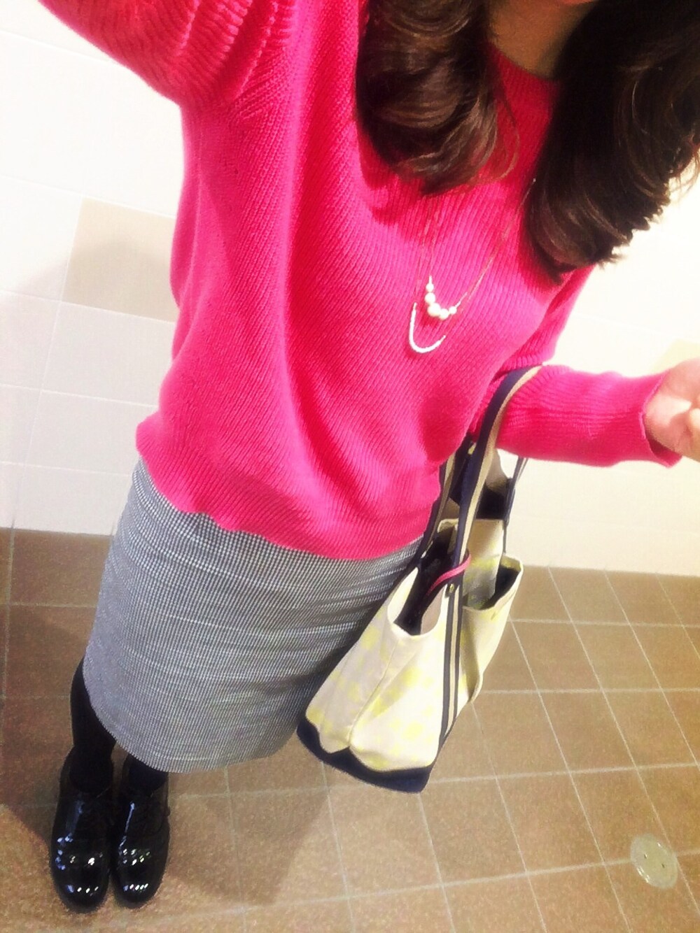 ニット:GU(去年の) 裾がよれてきれる( ゚д゚)捨てんと スカートは細かーいギンガムチェック