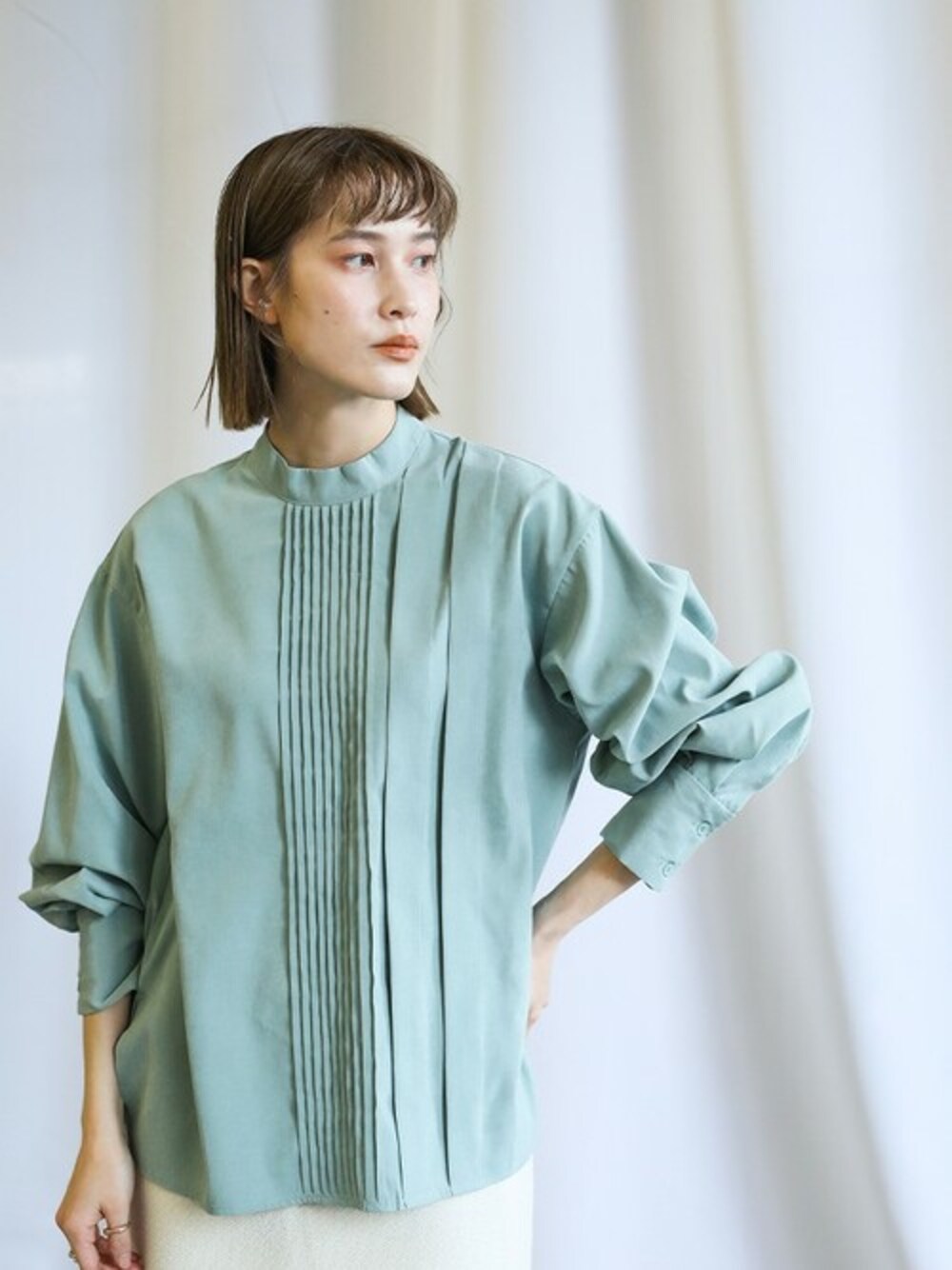 【New item】 【全4色】ハイネックランダムタックデザインブラウス