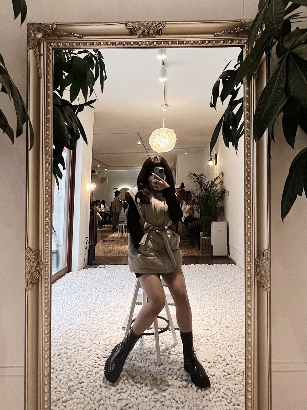 𝐦𝐨𝐜𝐜𝐡𝐢のダウンベスト「ロングエアコンダウンベスト」を使ったコーディネート