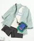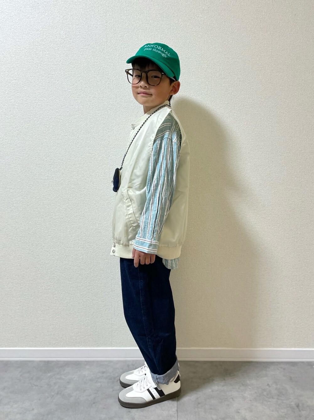 ご覧いただきありがとうございます🍀 リネンのスタンドカラーシャツで春のきれいめコーデ☺︎ お兄ちゃん、普段はボタン面倒だといって羽織るくらいしかしないけどね😜 7y〻124cm/24kg/👣20.5cm