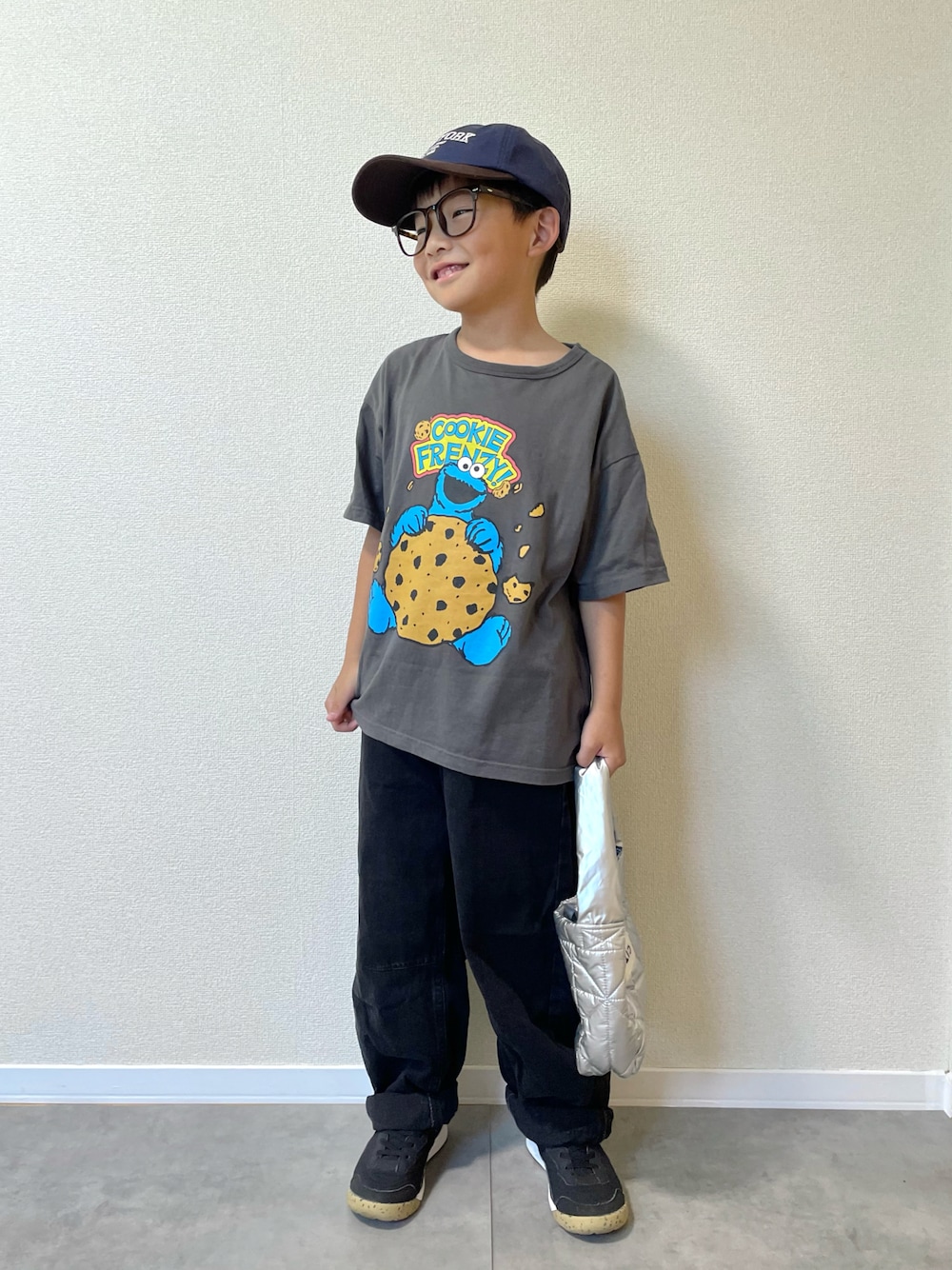 ご覧いただきありがとうございます🍀 クッキーモンスターのプリントTが主役! モノトーンでまとめてややクールに。 7y〻126cm/24kg/👣21.5cm