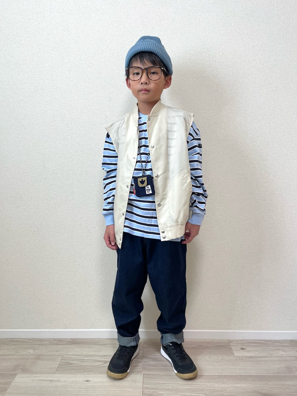 mocchirhのベスト「前開きナイロンベスト■90~140cm」を使ったコーディネート