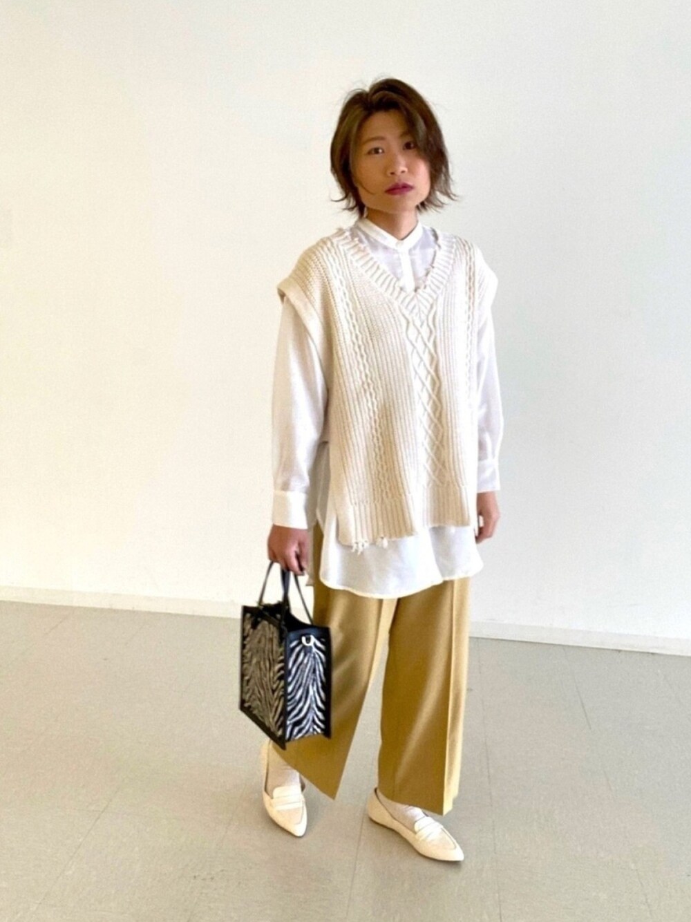 ご覧いただきありがとうございます! 初投稿でございます🙇♀️ 旬なダメージニットベストを取り入れた春コーデです。 レモンイエローのパンツにパンチのあるゼブラ柄Bagをポイントに合わせてみました(^^) 新しい季節はやっぱりワクワクして、楽しいですね💓 新作とっても可愛いです!