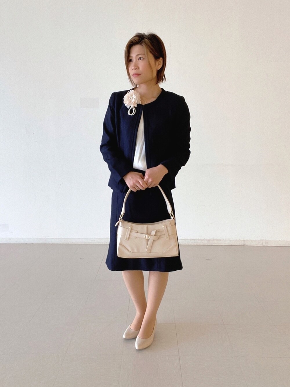 ご覧いただきありがとうございます! 入卒シーズンですね🌸 ネイビーは入卒どちらにも使える優秀カラー😊 ストレッチが効いていて動きやすいので、小さいお子様のいるママにも安心です♡ 実際この春子供の入園式に着ていく予定のコーデです👶