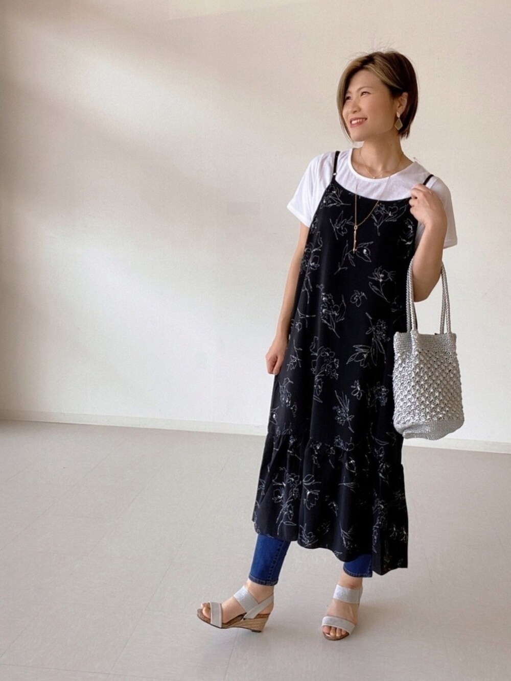 ご覧いただきありがとうございます! キャミワンピにデニムを合わせて楽ちんコーデ🐣