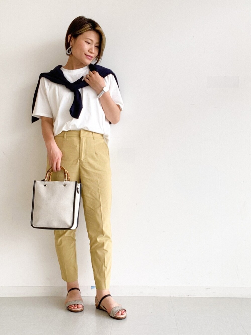 ご覧いただきありがとうございます! イエローパンツでもう1コーデ🐣 SUPIMAコットンのゆるTシャツはラグランが可愛く、シンプルなので着回しもしやすく◎