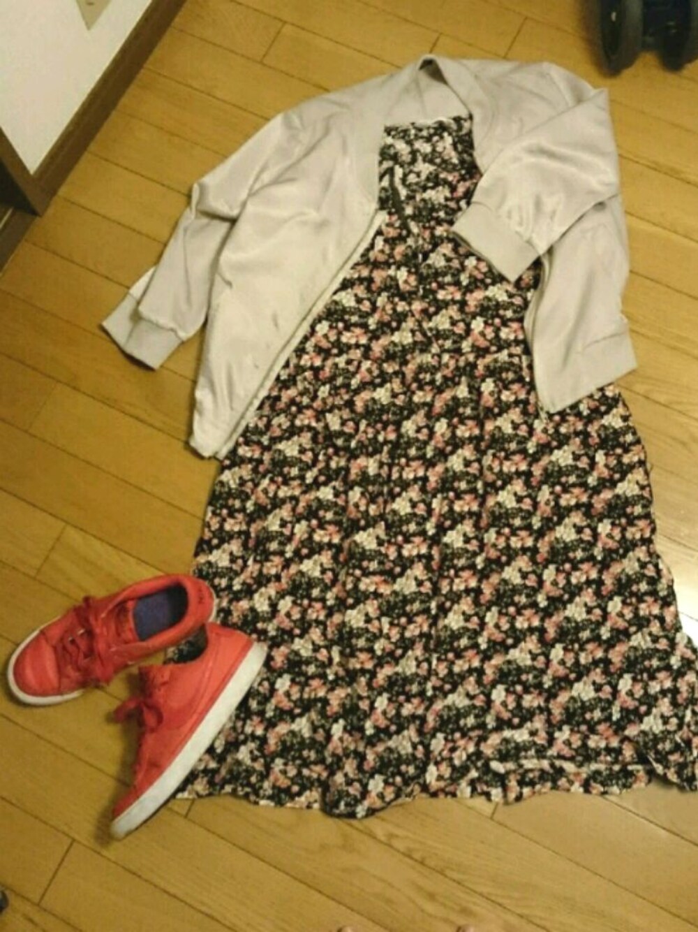 花柄ワンピース→古着 アウター→mystic スニーカー→Nike