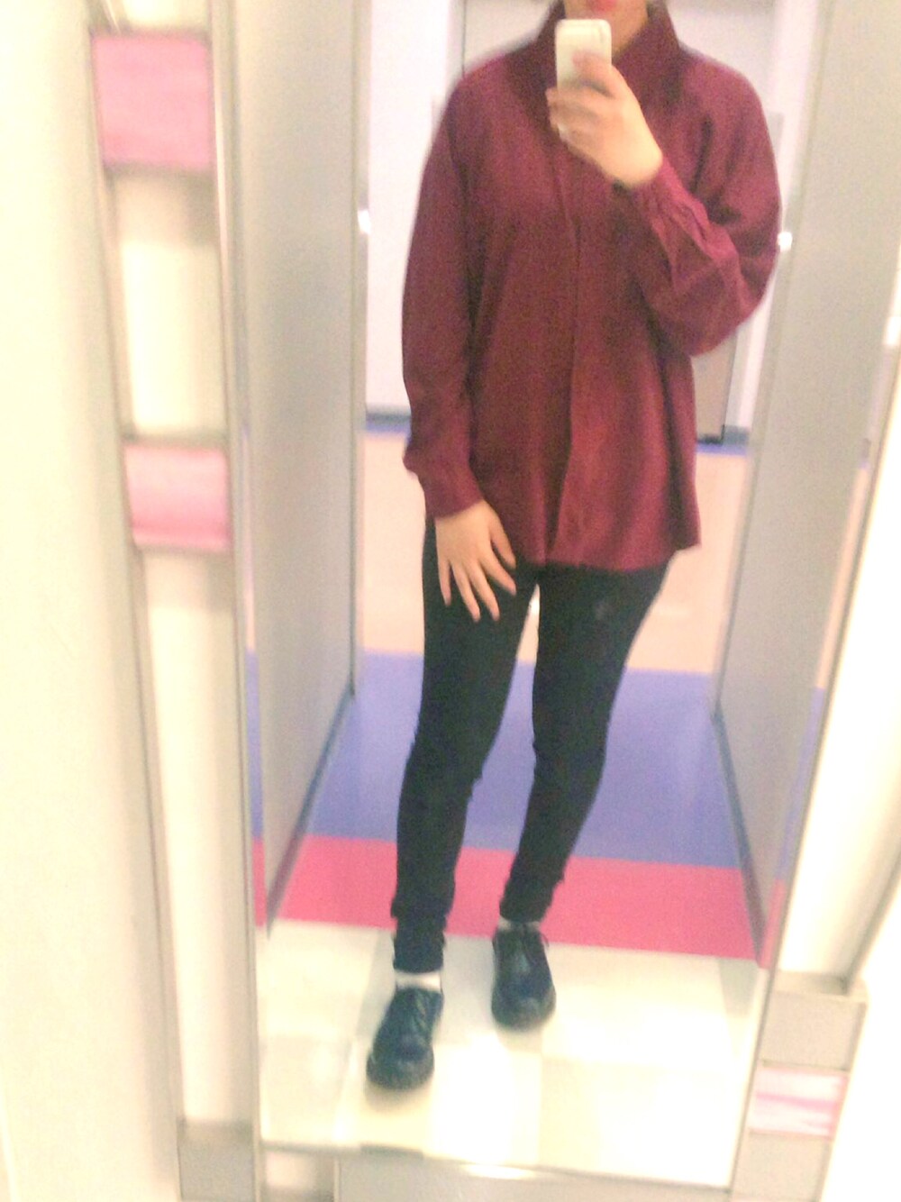 大好きな古着屋さんのシャツ 色で女性っぽさがあるなと