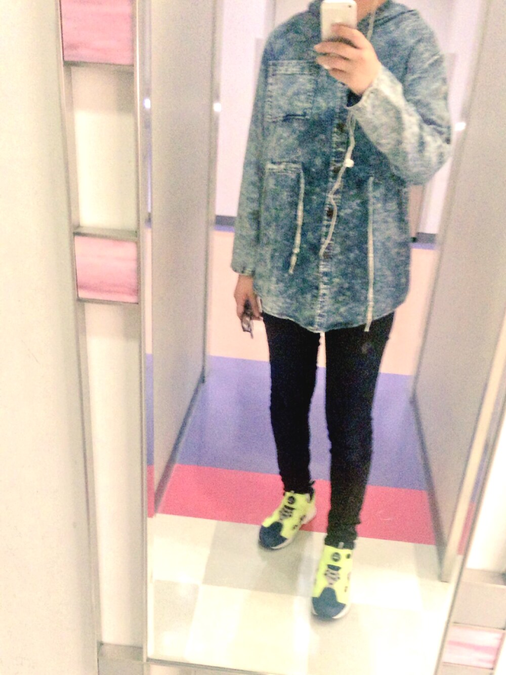 今日も古着屋さんのオーナーにおすすめしてもらった1着 ケミカルには蛍光が映えるよと教えてもらいました
