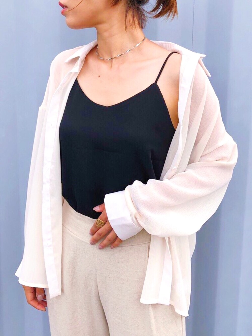mocoのキャミソール「楊柳 シフォン キャミソール」を使ったコーディネート