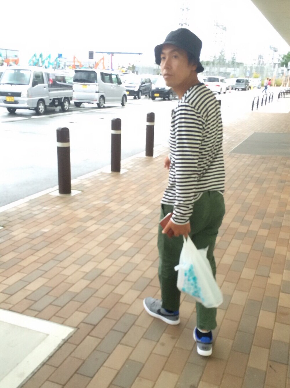 最近体調が悪く、コーディネートを載せる気力もありません。。。 自分のコーディネートを撮るのをお願いする気力もないので… 振り返る旦那さんを盗撮。。。(笑) 帽子はほとんど兼用です。