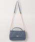 水色×白の寒色コーデです❄️⛄️ スカートは、前に膝くらいまでのスリットが入っております!歩きやすさ◎大きめなチェック柄も可愛いです💫 ぼんやりしすぎないように、差し色として濃いめの水色バッグを合わせました!こちらはチェーンも付いているので、肩にかけて使うことも出来ます😀