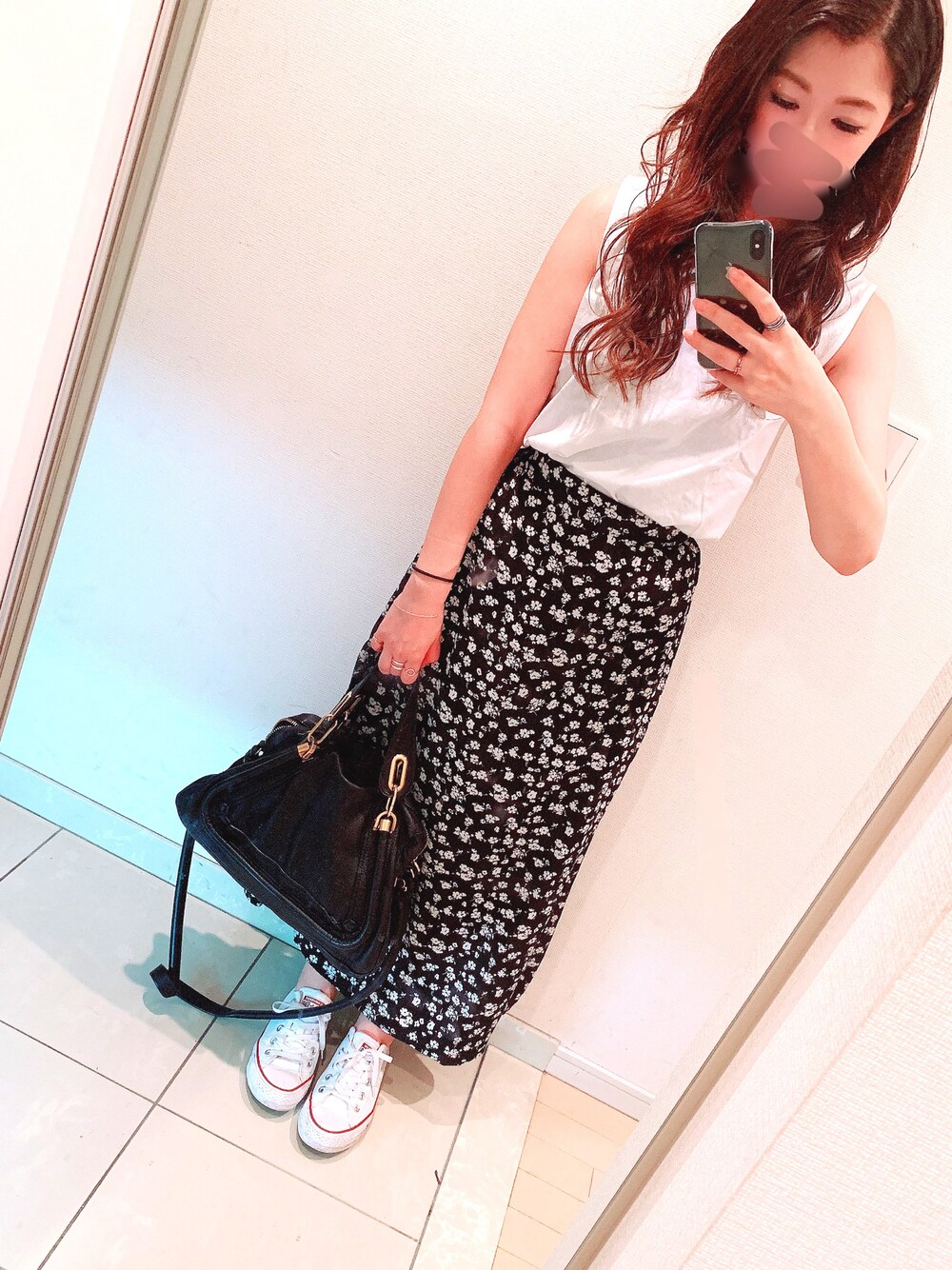 ゆうのスカート「レオパード/モノトーンフラワープリントロングスカート/花柄」を使ったコーディネート