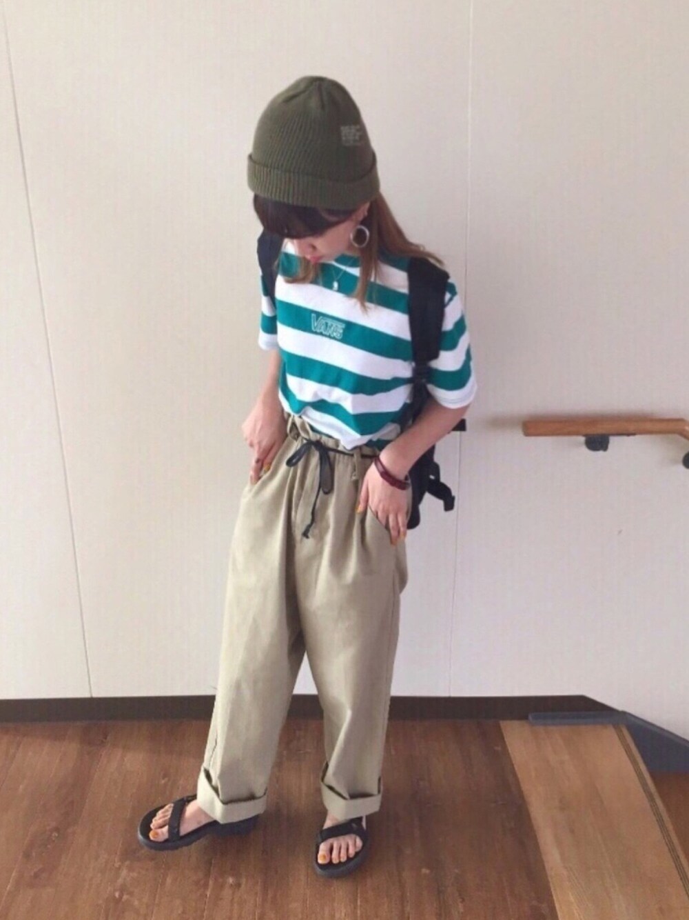 ベルトは靴ひもです笑 ということは片方履けない靴が存在しています👟 vansのTシャツはアメリカ留学していた友達からのお土産、カワイイ🗽
