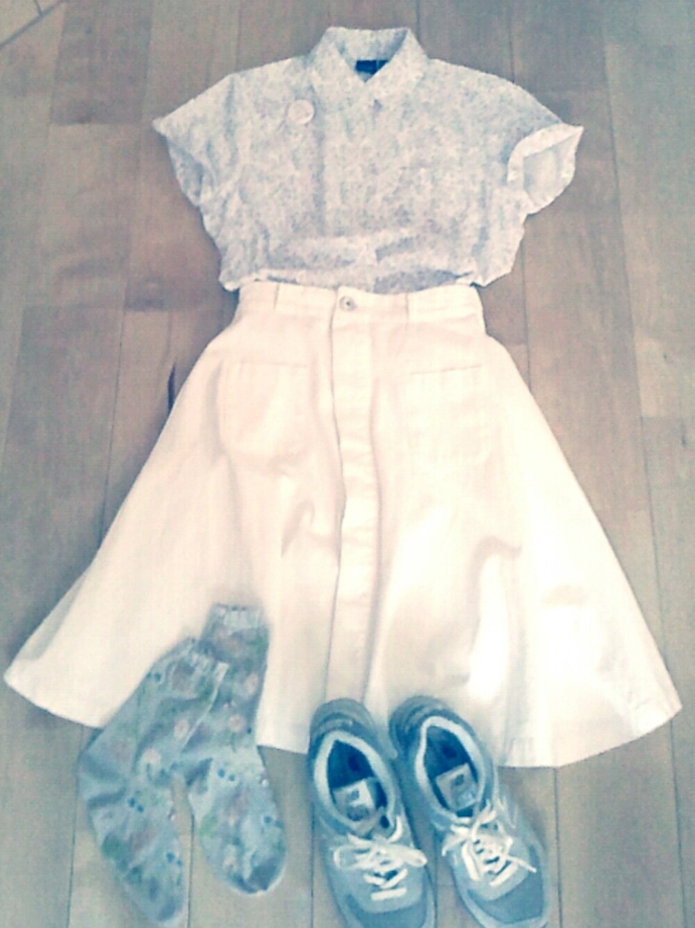 古着のシャツで ヨーロッパのおばあちゃんの かっこをイメージw パープル×ブルーの花柄シャツ は1000円でかった掘り出し物です シャツは絶対上までボタンをとめる派! かばんとりわすれましたが 前に使った革のショルダーを使う予定 明日からまた学校です つらい..... 花柄シャツ 古着 スカート レイカズン くつした アンティパスト くつ New Balance かばん 古着 カンバッジ ノベルティー