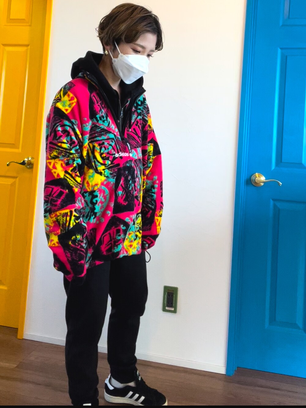 いつもご覧頂きありがとうございます😊 いいね!やお気に入りしてくださる方々にいつも感謝しています🙇♀️🔶🔷 今日はいつもより暖かいのでダウン無しのフリースのadidasでポカポカ🥰 こちら一目惚れしてアウトレットで購入したものです🤗 前髪が爆発してたので誤魔化して固めてます🙃💧