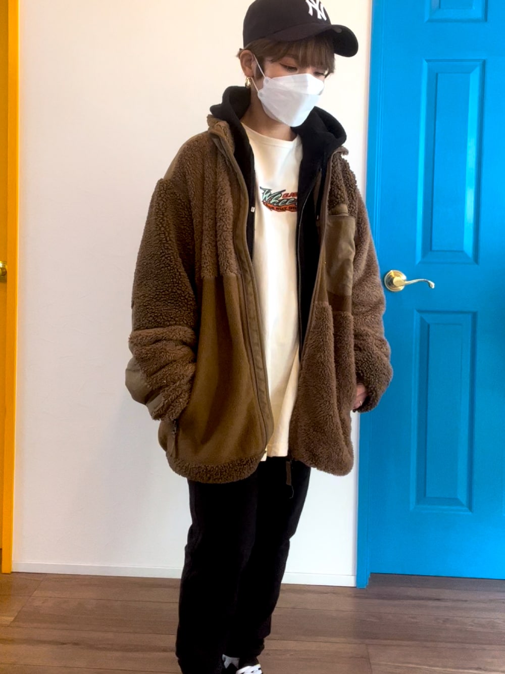 いつもご覧くださる方々ありがとうございます🥲🔶いいね!やお気に入りに登録してくださる方々ありがとうございます🙇♀️♥️ 今からスケボー行くので防寒重視の重ね着で🤗 ボアジャケットが優秀すぎる👯♂️ King Gnu常田さん着用のボーイズアイテムは2年連続大活躍中🔥
