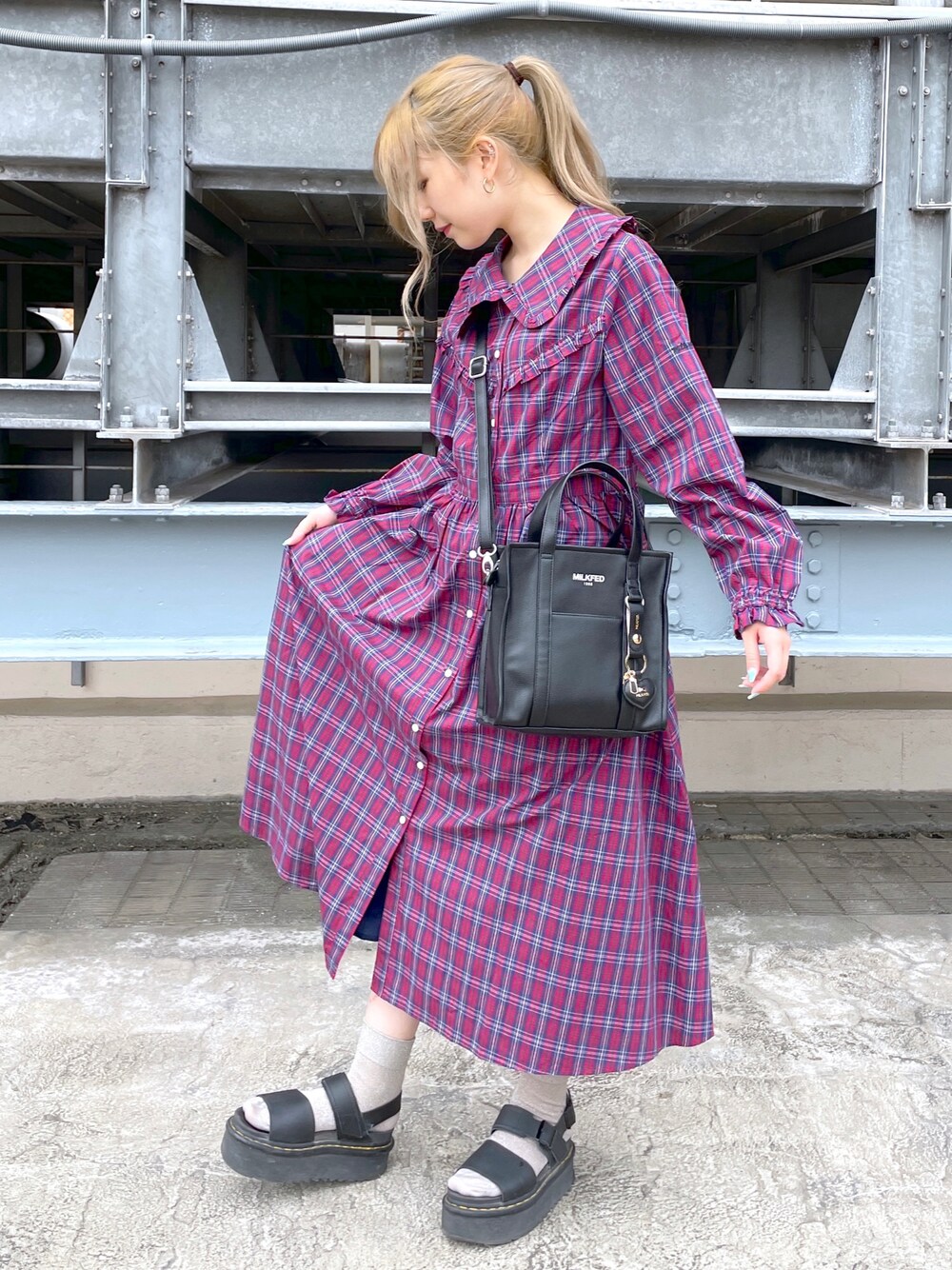 ト ザト ト モ子のワンピース「PLAID RUFFLE DRESS」を使ったコーディネート