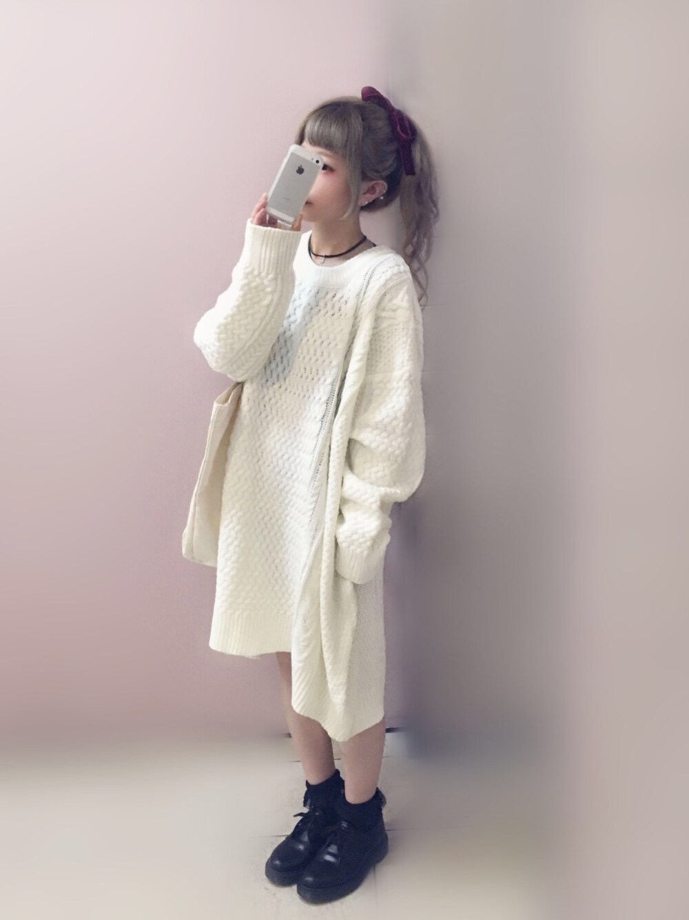 もにこ。のニット/セーター「オーバーサイズケーブルニットセーター アランニット ロングニットワンピース」を使ったコーディネート