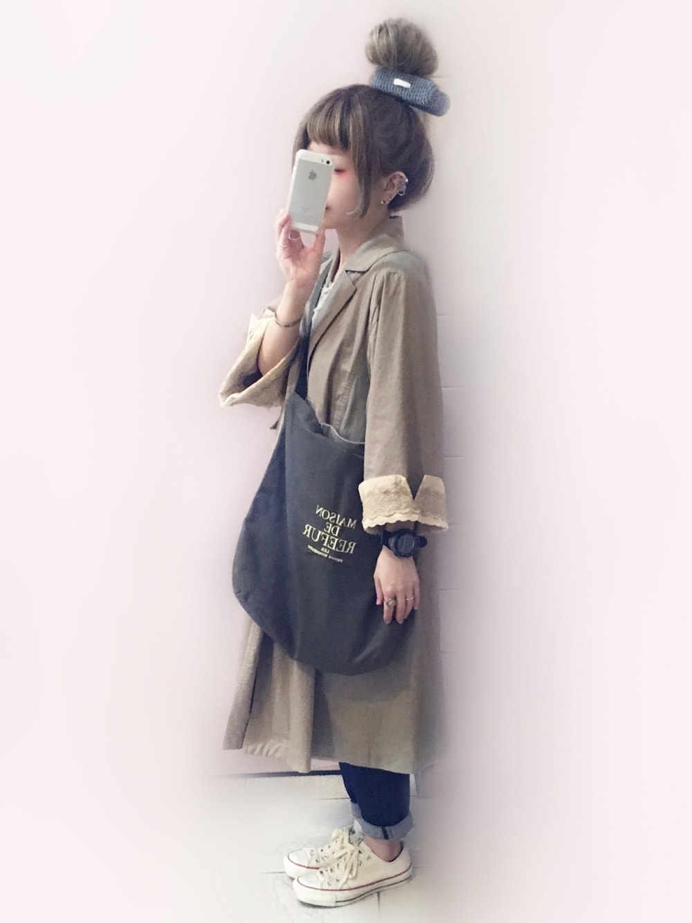 もにこ。のトレンチコート「お袖レース 𖧷 ロングコート 」を使ったコーディネート