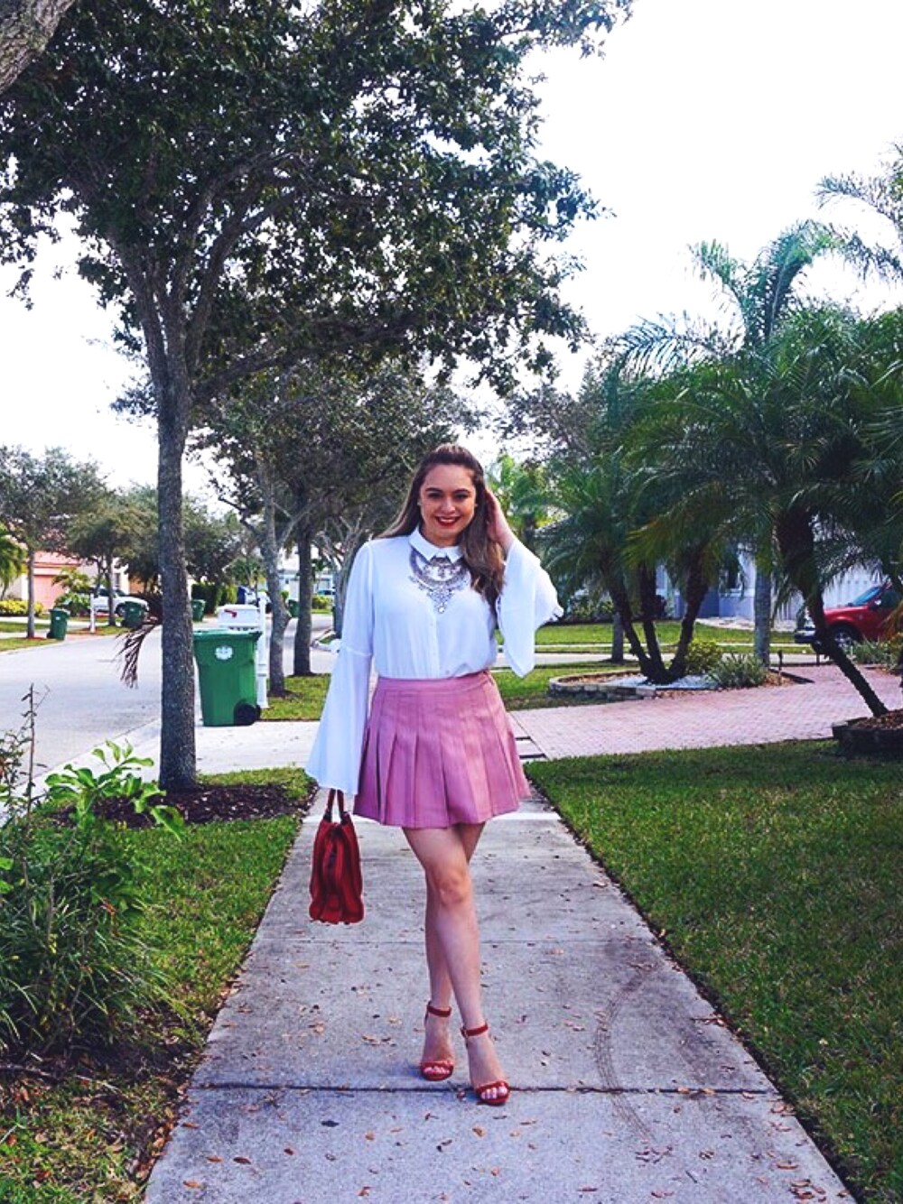 The perfect Valentine's Day date outfit! Of course red details are a must for the occasion and the bell sleeve top is the perfect trendy touch.